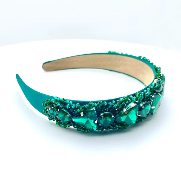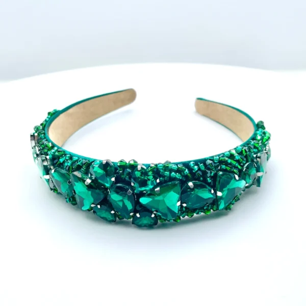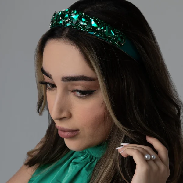 MAHAK vereint zarte Eleganz mit dezentem Glanz – perfekt für alle, die Leichtigkeit lieben. Der flache Haarreifen aus edlem Satin ist angenehm zu tragen und ideal für längere Tage oder sensible Köpfe. Verziert mit feinen grünen Glasperlen und funkelnden Strasssteinen bringt MAHAK einen Hauch von Frische und Stil in jedes Outfit – ob im Alltag oder zu besonderen Anlässen.
